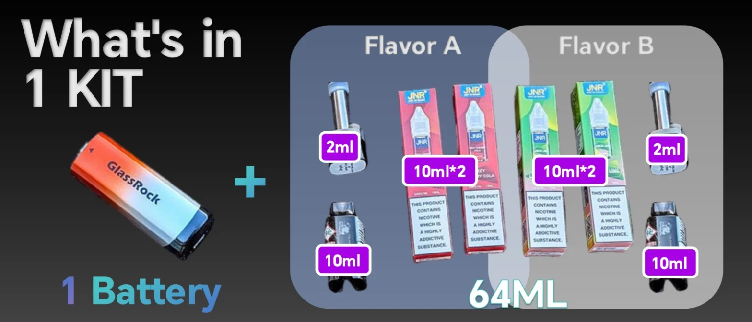 💨 Total : 64 ml d’e-liquide pour profiter d’une vape prolongée et intense.
